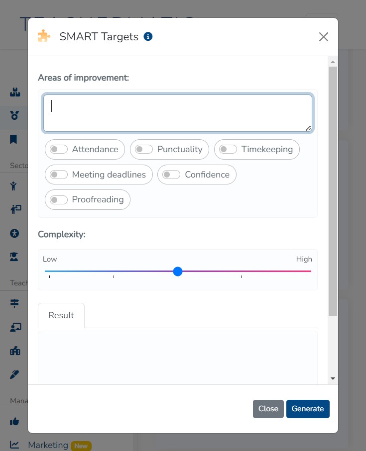 Generate specific, measurable, achievable, relevant, and time-bound (SMART) targets to help meet your goals. Specific: Be clear about the desired outcome. Measurable: Decide how to judge whether the outcome has been achieved. Attainable: Be realistic - is the outcome actually possible? Relevant: Does the desired outcome fit within or be related to your goal? Time-bound (sometimes expressed as time-based): When must the targets be met, or what is the timescale? Keywords in content.